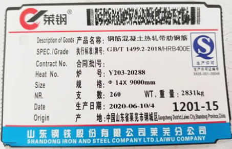 鋼筋吊牌上面的參數(shù)表示了鋼筋的直徑、數(shù)量、鋼筋規(guī)格型號、爐批號、生產(chǎn)日期、單根鋼筋長度、整捆重量等。一捆鋼筋通常是一個標牌(編號一樣的合格證不管你看到多少都算是一個)。代表同一爐、同一批出的。所有鋼筋進場都需要現(xiàn)場專職實驗員在監(jiān)理見證下現(xiàn)場取樣,然后到zhi有相應(yīng)資質(zhì)的實驗室去送檢,復(fù)試合格后才能使用,鋼筋復(fù)試報告才是否合格的依據(jù),產(chǎn)品合格證上的許可證號和爐批號正規(guī)廠家生產(chǎn)的因為經(jīng)銷商在倒售鋼筋過程中有時也不一定能對上。