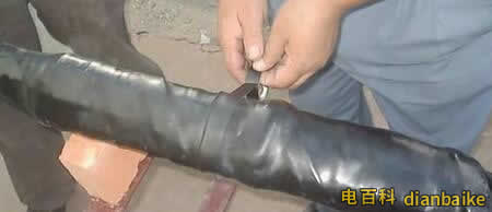 12、烘烤外護(hù)層,將一端電纜中早已套入的長外護(hù)套管移到超過壓接管位置時開始熱縮
