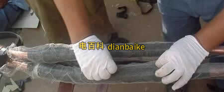 11、焊接地線,用附帶的編織銅線將接頭兩端的保護(hù)鋼鎧聯(lián)結(jié)(焊接)起來。