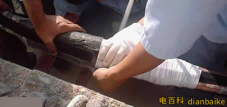 7、繞包密封膠:在反應(yīng)力處包繞密封膠(或J-20絕緣自粘帶)并搭蓋端子10㎜。繞包層表面應(yīng)連續(xù)光滑。