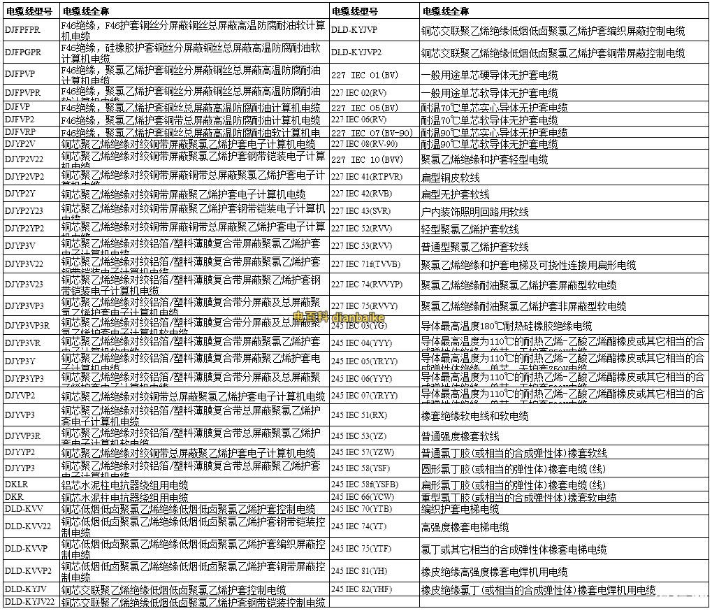 最新電纜線規(guī)格型號大全、電纜載流量對照表