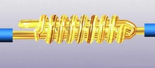 對于較小截面的芯線,可先將支路芯線的線頭在干路芯線上打一個環(huán)繞結(jié),再緊密纏繞5 ~8 圈后剪去多余線頭即可。