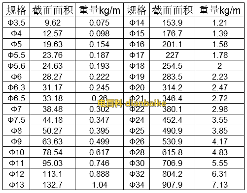 鋼材有圓鋼、螺紋鋼、扁鋼、等邊和不等邊鋼、工字鋼、槽鋼及鋼管等,鋼筋以螺紋鋼和圓鋼為主,圓鋼的鋼筋理論重量表可以通過計(jì)算得出,每米鋼筋理論重量具體算法是鋼筋直徑平方乘以0.00617,例如10mm直徑鋼筋=10*10*0.00617=0.617kg/m。更多關(guān)于圓鋼問題請(qǐng)關(guān)注電百科,盜載必究。