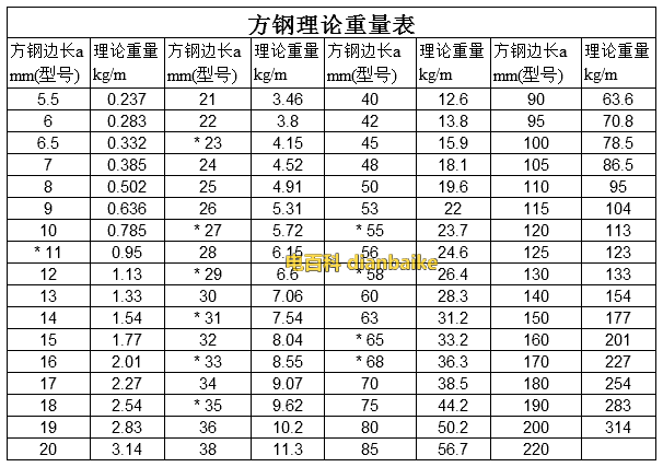 方鋼型號和方鋼規(guī)格表大全
