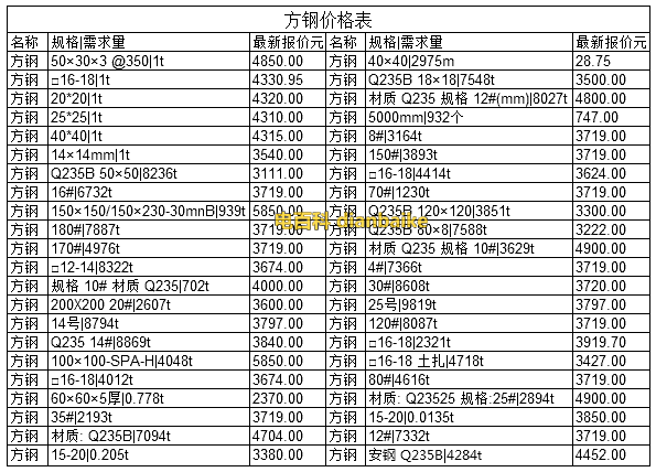 方鋼是什么?方鋼型號規(guī)格表和方鋼價格及方鋼理論重量表