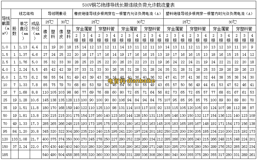 注:銅線平方指的是多少平方毫米,如果是鋁線,線徑要取銅線的1.5-2倍;如果銅線電流小于28A,按每平方毫米10A來(lái)取肯定安全;如果銅線電流大于120A,按每平方毫米5A來(lái)取。